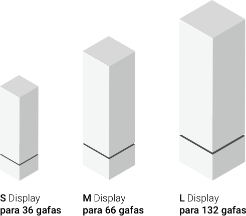 Tiene la elección: Los expositores en una gran variedad de acabados llevan a una presentación efectiva y fácil de llevar a cabo. Expositores de mesa, de pie y dobles con una capacidad de 24 hasta 202 gafas. Para el pie y el cabezal se puede elegir entre el acabado en madera o material sintético para que se adapte mejor al diseño de su tienda.